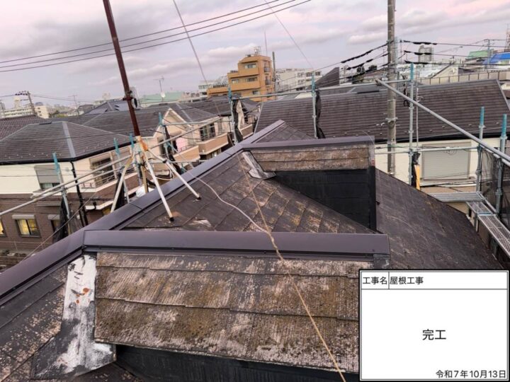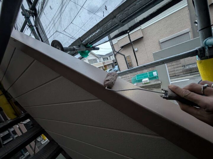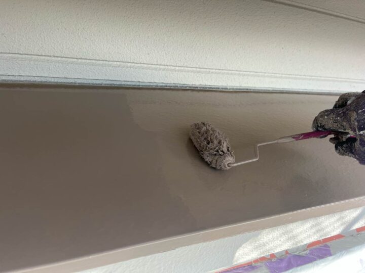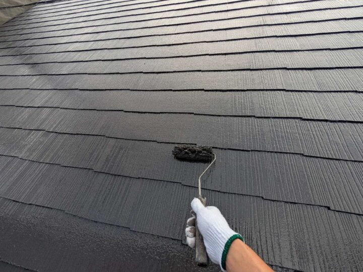屋根の上塗り2回目の行っております。 上塗り塗料を2回塗ることにより、塗料の耐久性を発揮します。 -