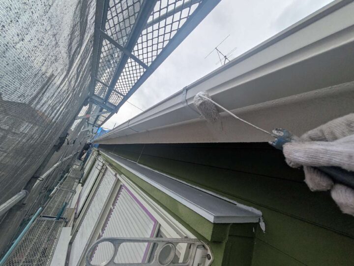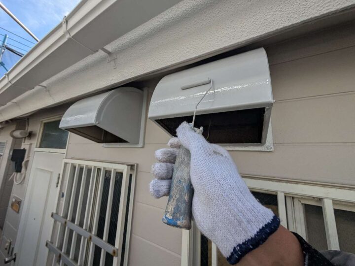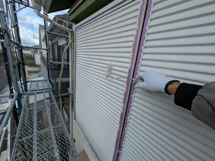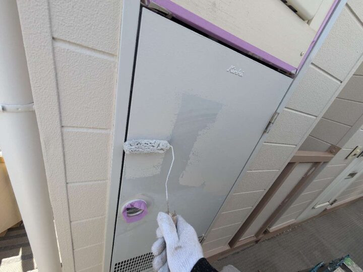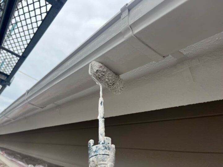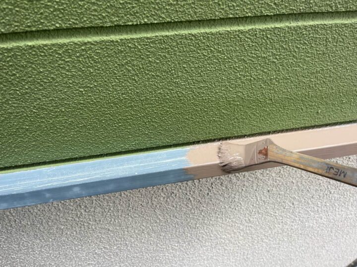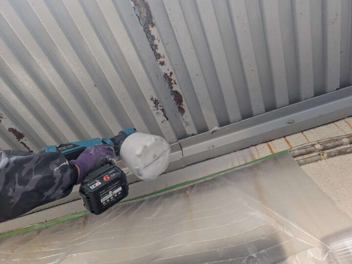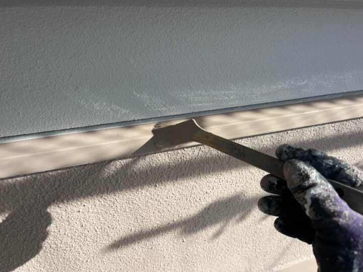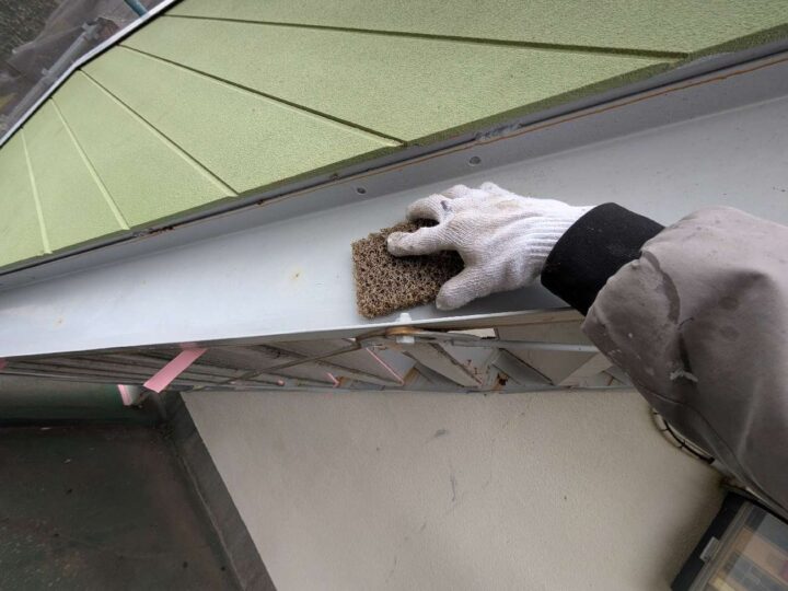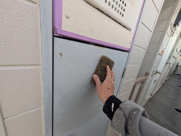 スチール製の付帯部は、塗料の密着性を高める為、ケレンという軽くキズを付ける作業が重要です。 -