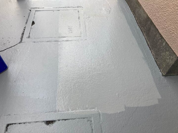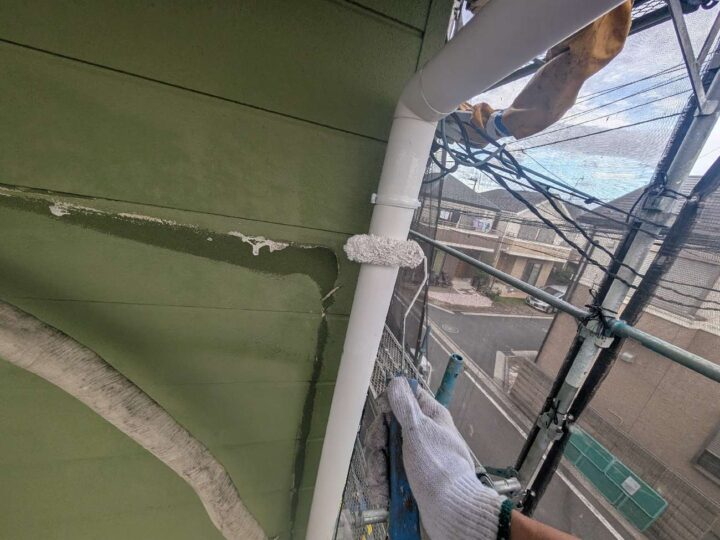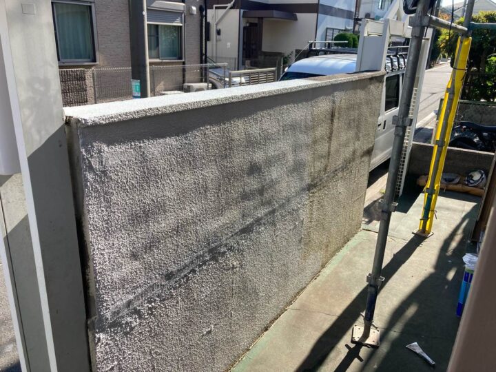 「微弾性フィラー」と呼ばれる、弾力性があり細かなひび割れなどを埋めてくれる下塗り材を塗布いたします。 -