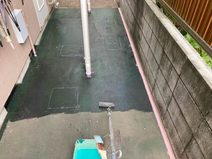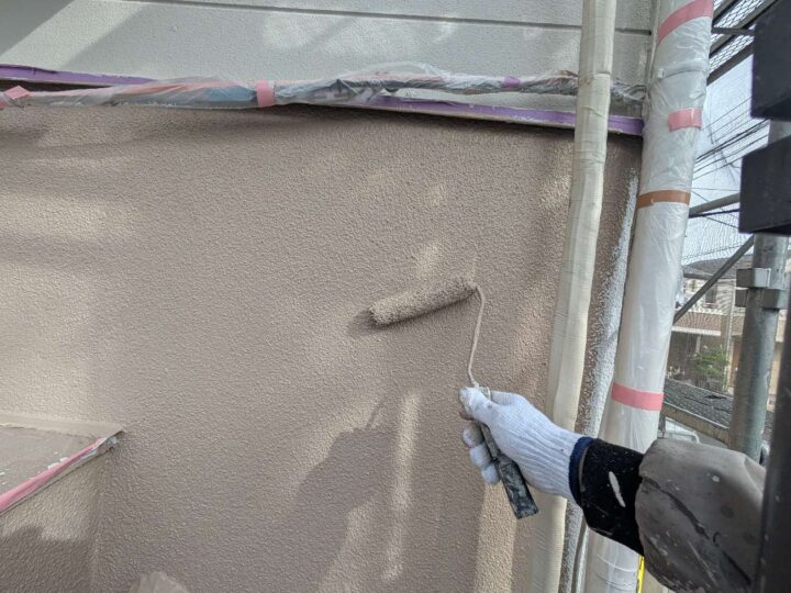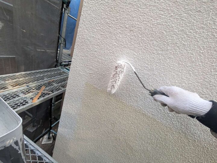 「シーラー」と呼ばれる、下地に浸透し、密着性を高める下塗り材を塗布いたします。 -