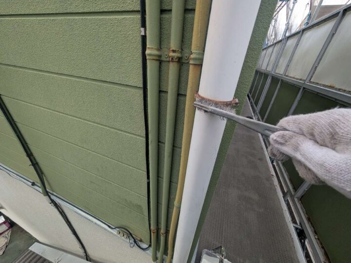 ケレン後に、鉄部用のサビ止め塗料を塗布いたします。 -
