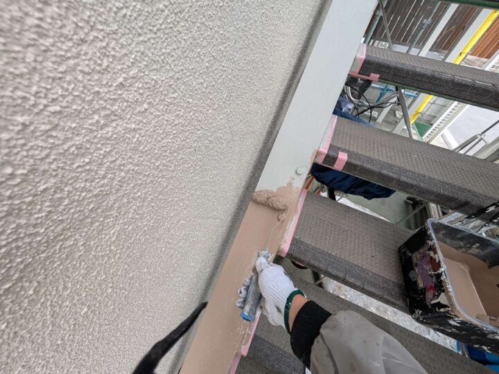 【鉄骨階段】上塗り1回目(シリコン塗料)