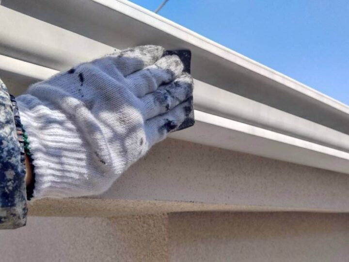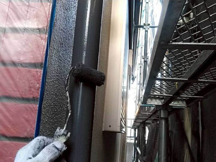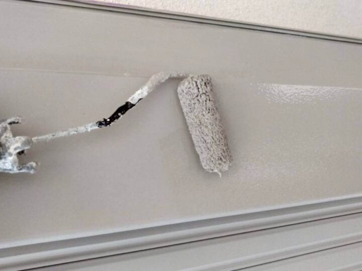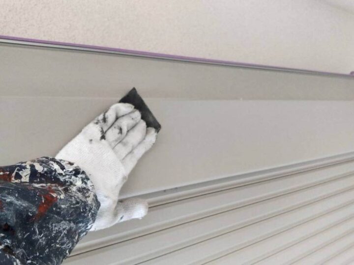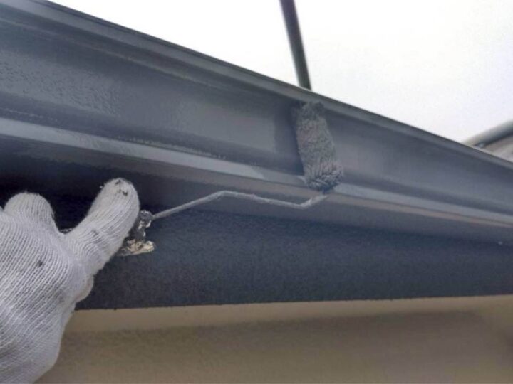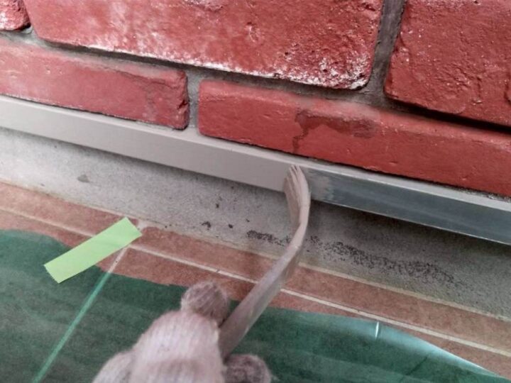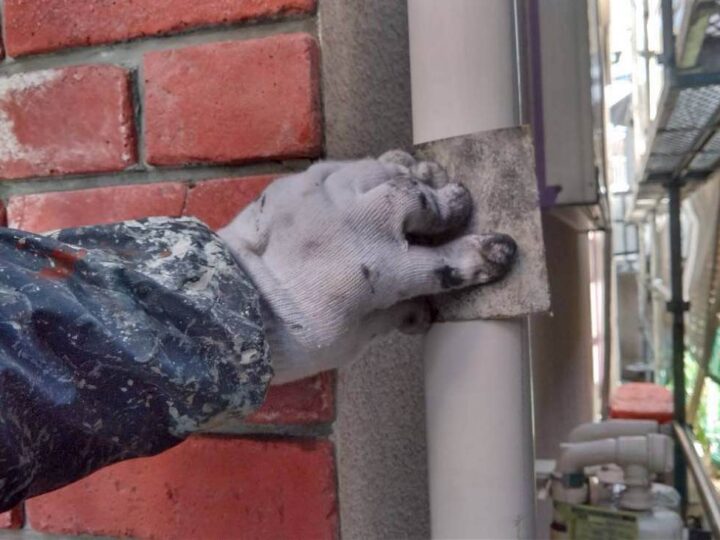 スチール製の付帯部は、塗料の密着性を高める為、ケレンという軽くキズを付ける作業が重要です。 -