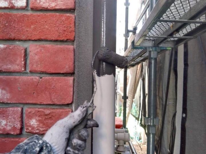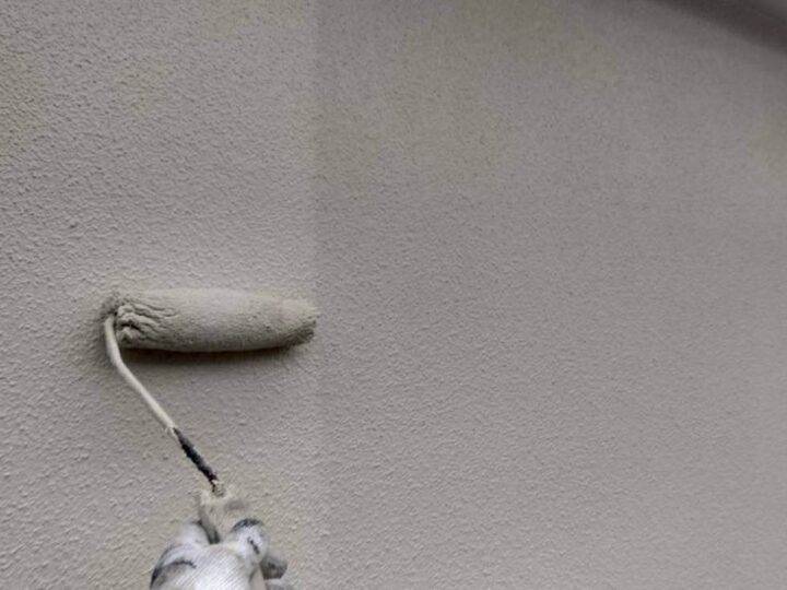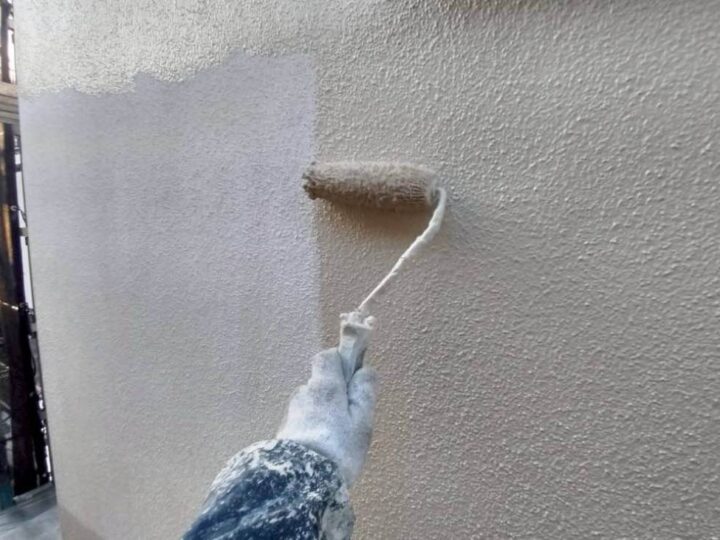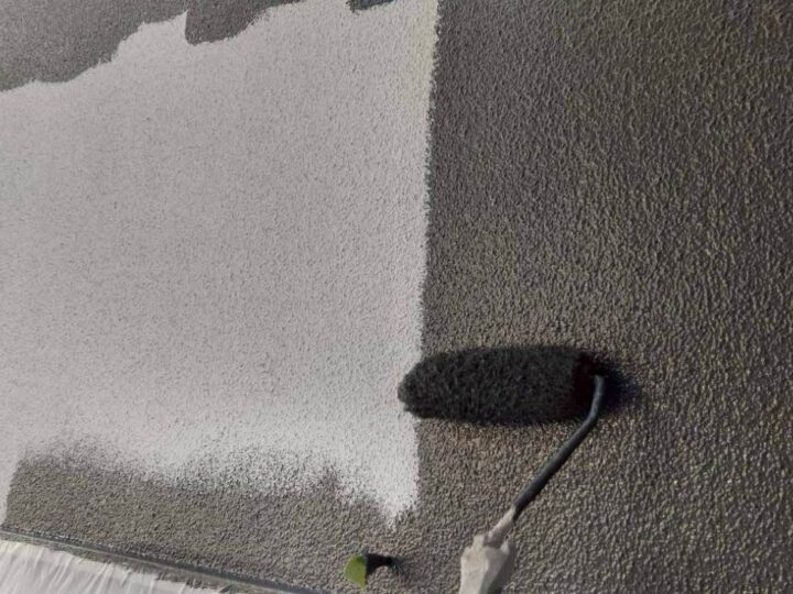 「微弾性フィラー」と呼ばれる、弾力性があり細かなひび割れなどを埋めてくれる下塗り材を塗布いたします。 -