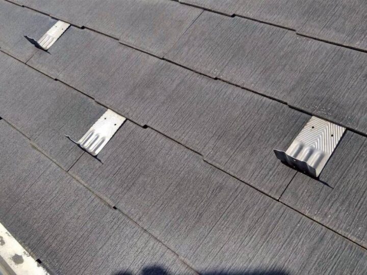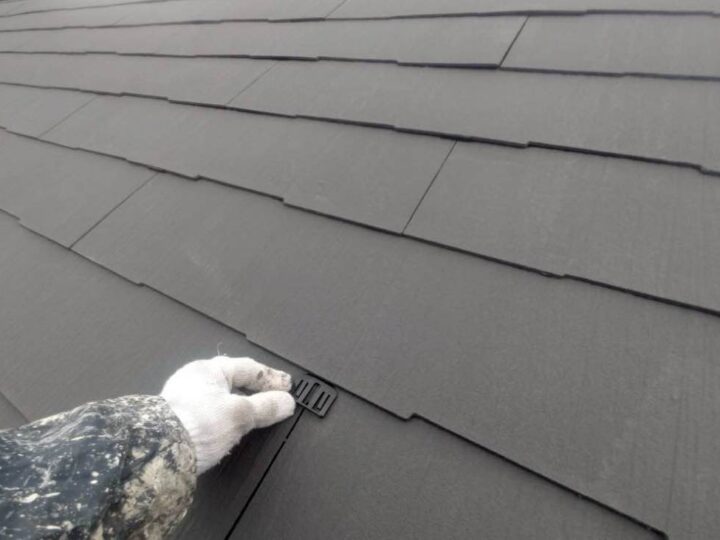 屋根材と屋根材の隙間を確保するため、「タスペーサー」という専用の部材を差し込みます。 屋根材の隙間を埋めてしまうと、狭いところに吸い上げられる「毛細管現象」という水の特性で、屋根の裏側に雨水が回り込み、雨漏りの原因となってしまいます。 -