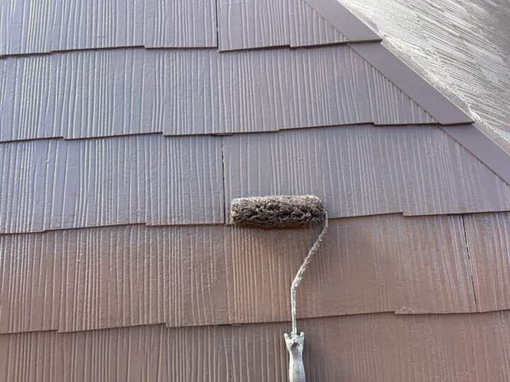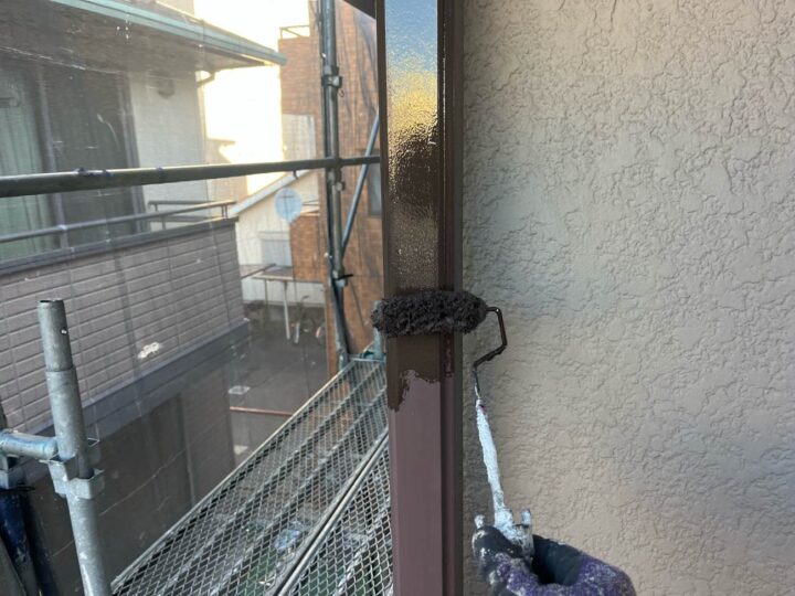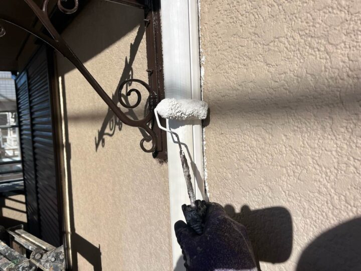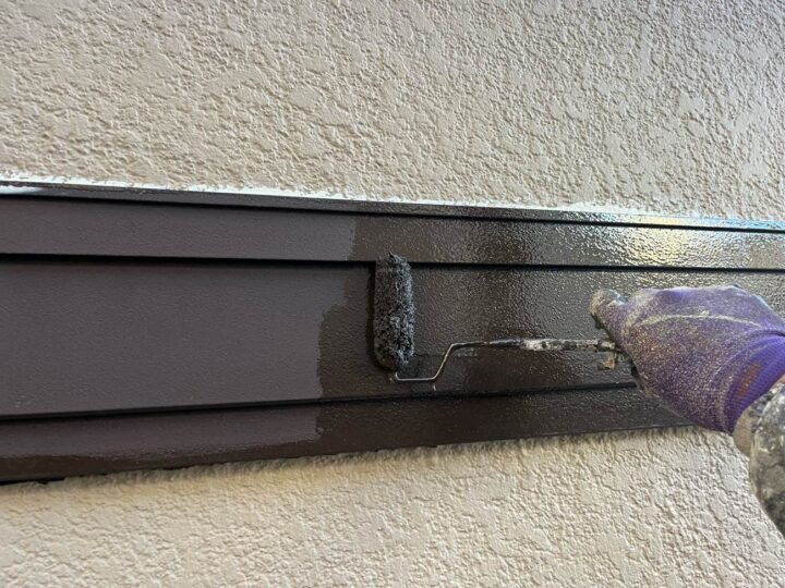 外壁塗料と同じ工程、同じ塗料で上塗り1回目を塗布しております。 -