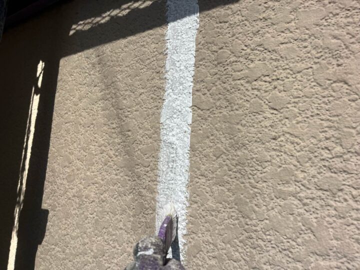 「微弾性フィラー」と呼ばれる、弾力性があり細かなひび割れなどを埋めてくれる下塗り材を塗布いたします。 -