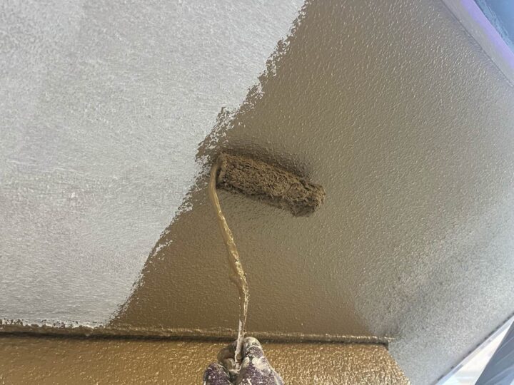 【軒天井】上塗り1回目(外壁塗料と同じ)