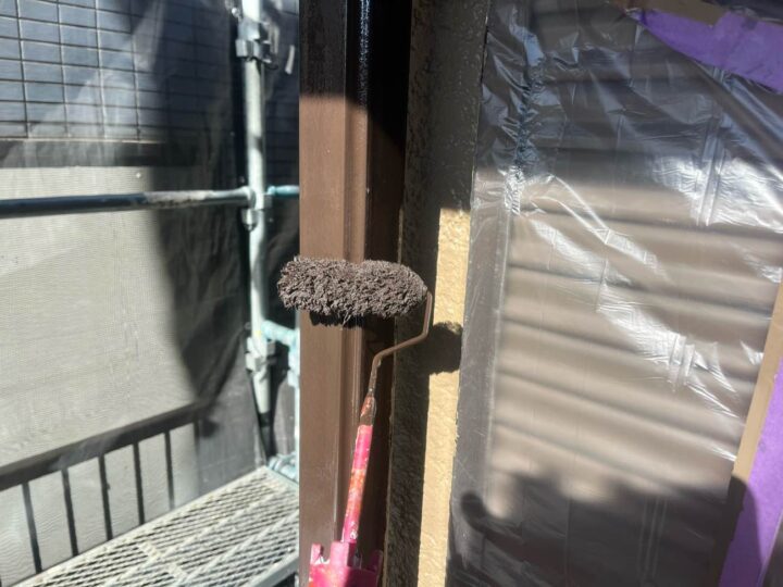 外壁塗料と同じ工程、同じ塗料で上塗り2回目を塗布しております。 -