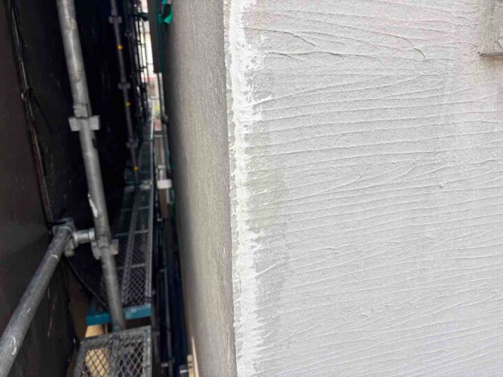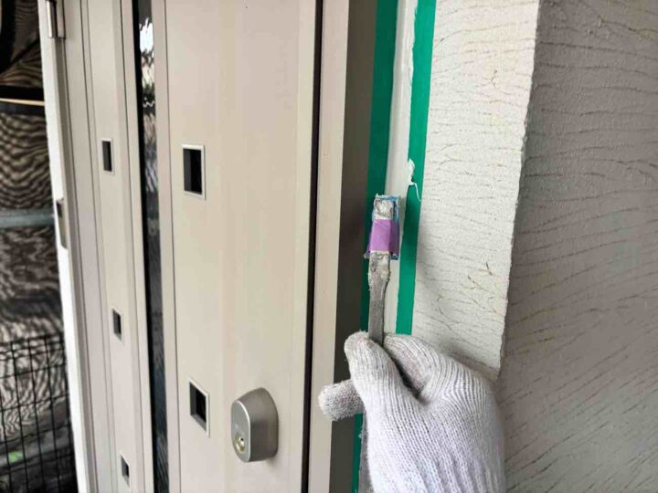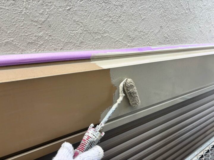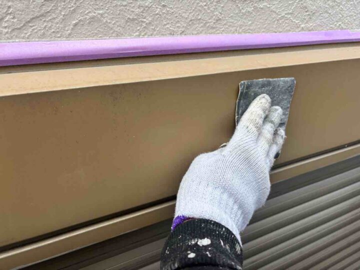 スチール製の付帯部は、塗料の密着性を高める為、ケレンという軽くキズを付ける作業が重要です。 -