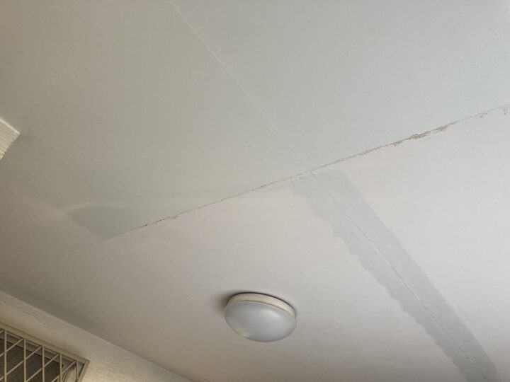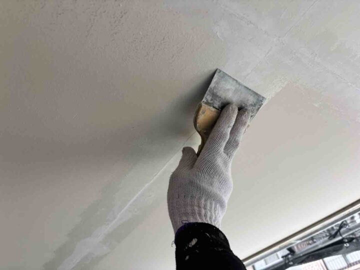 軒天井の凹凸をフラットにするため、パテ処理を行います。 -