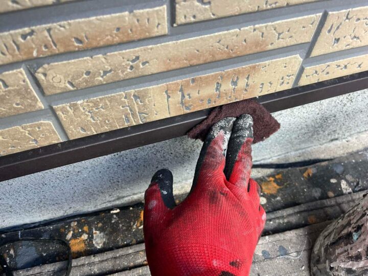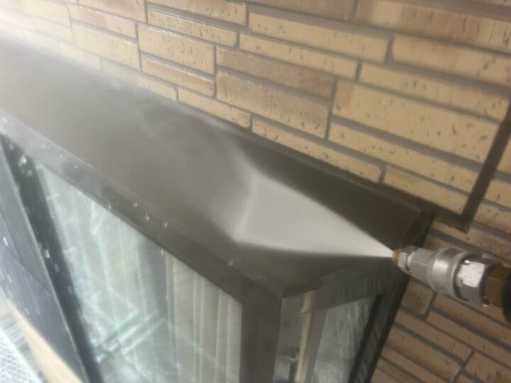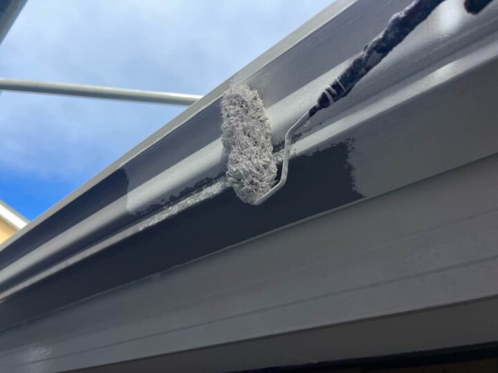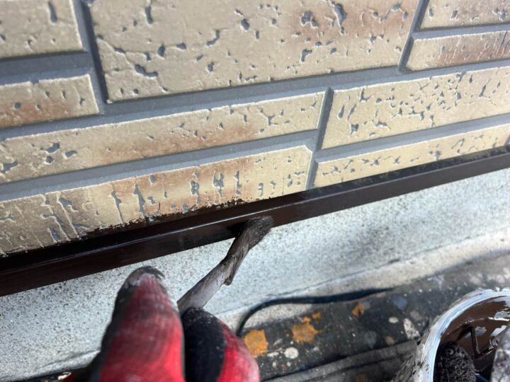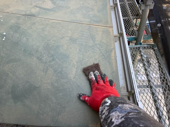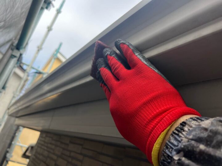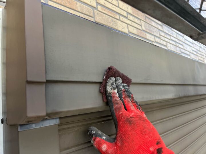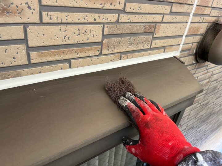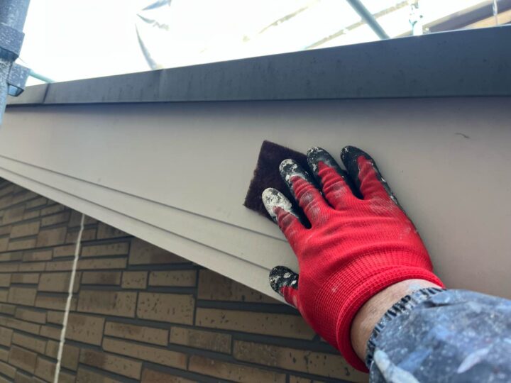 スチール製の付帯部は、塗料の密着性を高める為、ケレンという軽くキズを付ける作業が重要です。 -