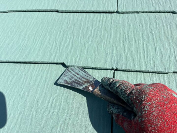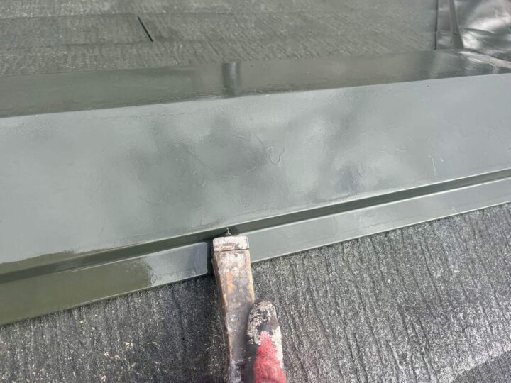屋根材と屋根材の隙間を確保するため、「縁切り」というカッター等工具を使用して塗膜で塞がってしまった箇所を切ります。 屋根材の隙間を埋めてしまうと、狭いところに吸い上げられる「毛細管現象」という水の特性で、屋根の裏側に雨水が回り込み、雨漏りの原因となってしまいます。 -